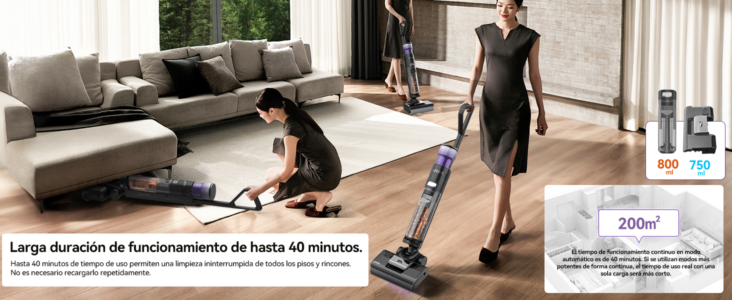 - Autonomía Ampliada: Batería 6×4.000 mAh ofrece 40 minutos de limpieza, manteniendo tu hogar impecable.