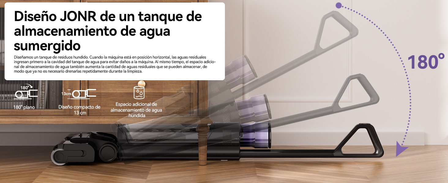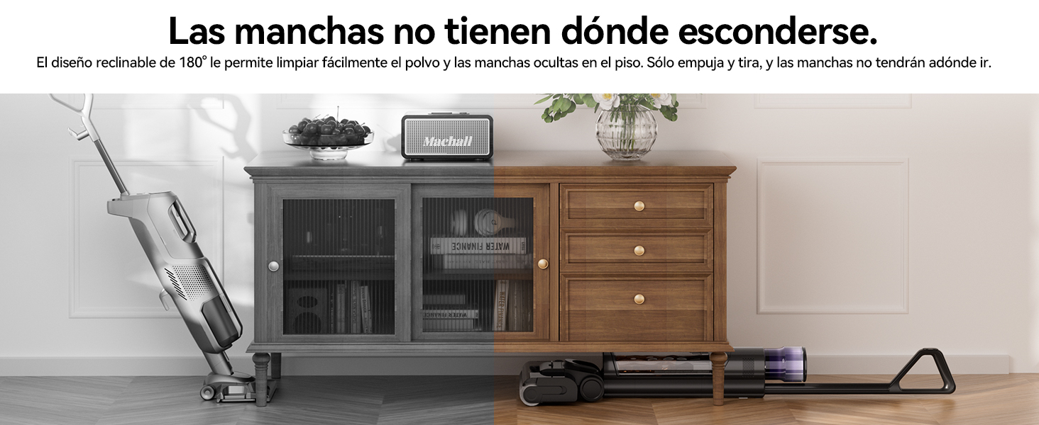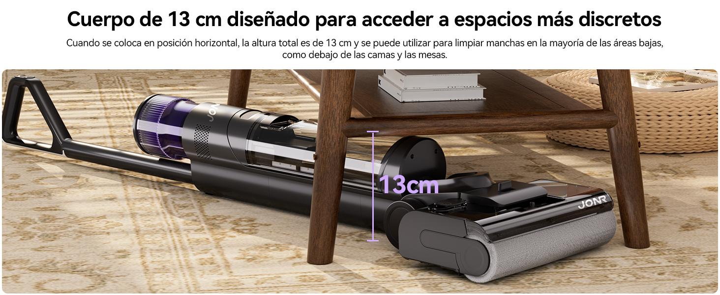 - Alcance Abatible 180°: Con solo 13 cm de grosor, limpia espacios estrechos sin esparcir polvo, ideal para zonas con pelo de mascotas.