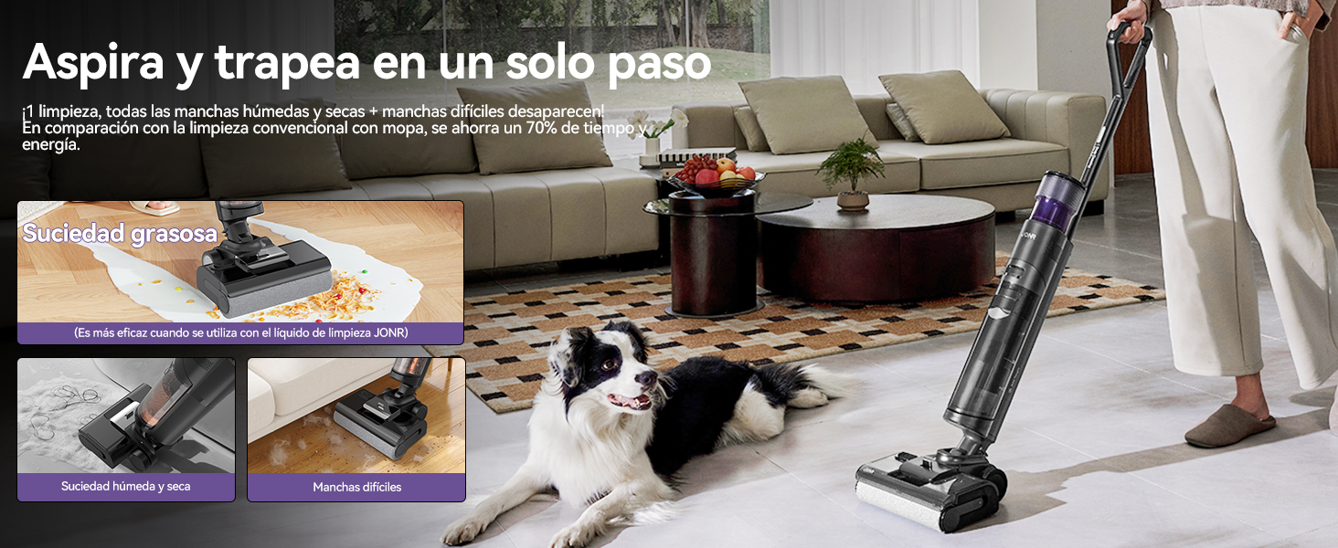 - Potencia 2-en-1 17.000 Pa: Combina escoba, aspiradora y fregona para todo tipo de suciedad.