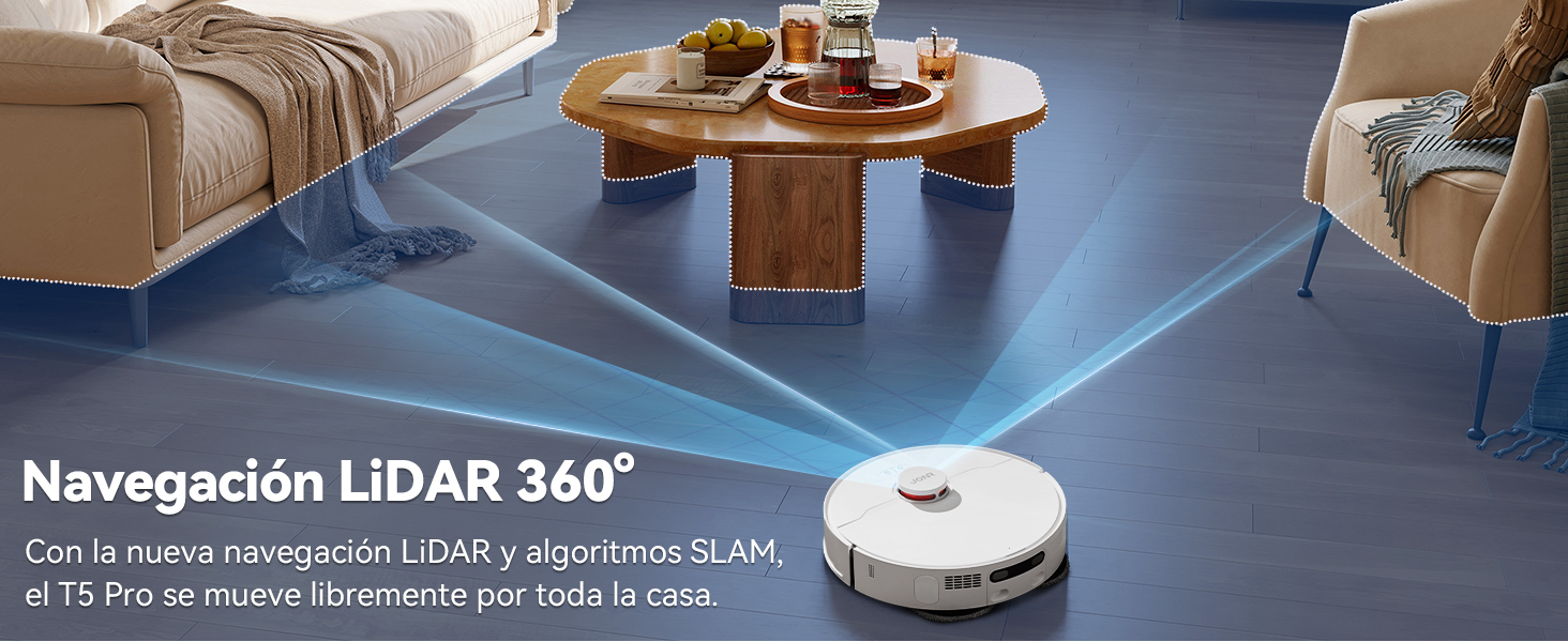 - Estación de limpieza todo en uno: Experimente la máxima comodidad con la estación de limpieza integrada del aspirador robot T5 Pro. La función de recolección automática de polvo libera sus manos, mientras que la base desmontable permite un fácil mantenimiento. Pase menos tiempo limpiando y más tiempo disfrutando de su hogar.
