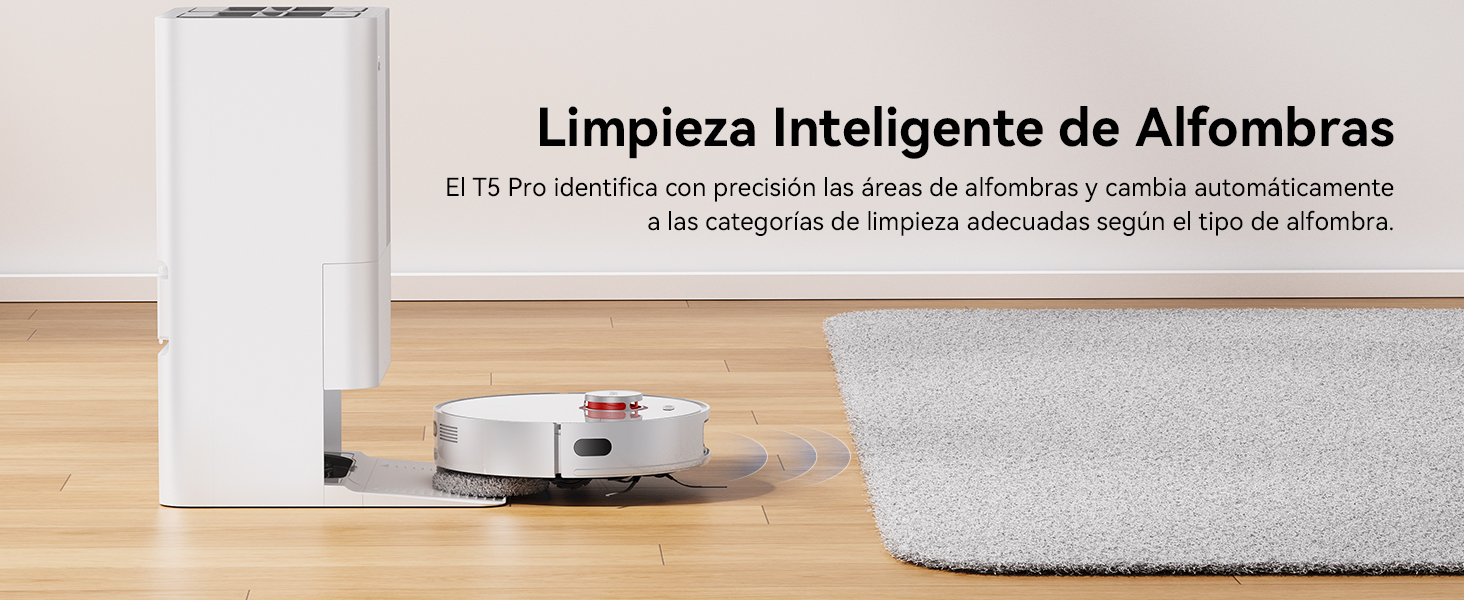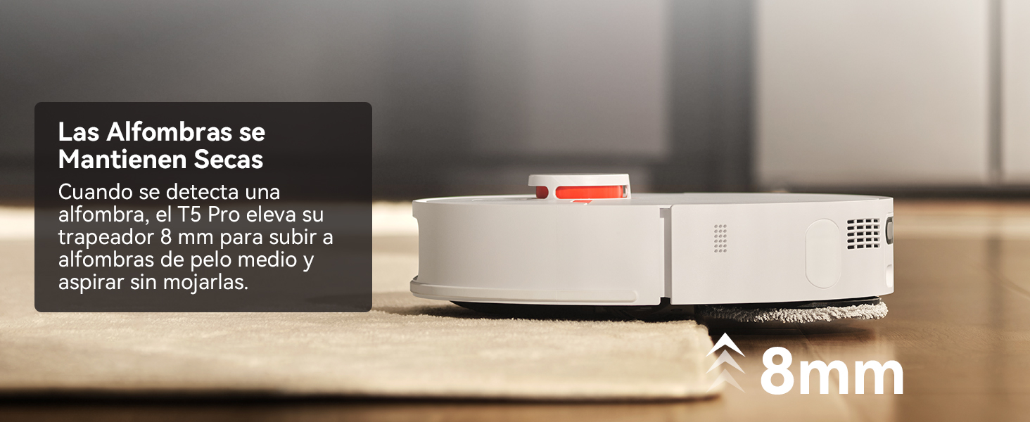 - Cuidado inteligente para las alfombras: Detecta con precisión alfombras y obstáculos de hasta 8 mm, garantizando que sus alfombras favoritas reciban un trato delicado y adecuado en todo momento.