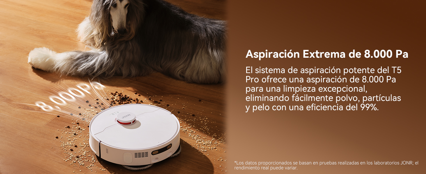 JONR T5 Pro Robot Aspirador y Fregasuelos, 8000Pa Aspirador Robot con Mopa Extensible, Lavado Automático de Mopa y Secado con Aire Caliente, Mopas Dobles