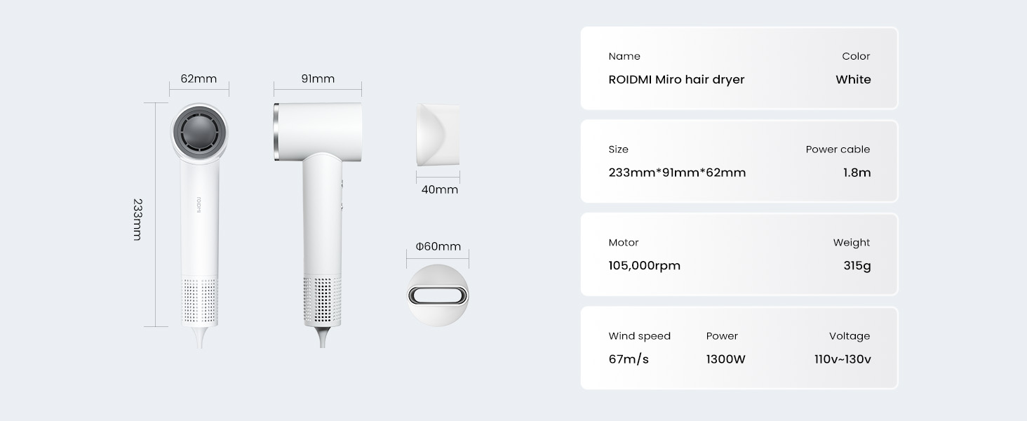 - 【Mantiene el cabello】ROIDMI Miro puede generar 21 millones de iones activos negativos de oxígeno para reducir la electricidad estática del cabello y formar una capa protectora que retiene el contenido de humedad natural del cabello, así como cuidar las raíces del cabello para un resultado suave.