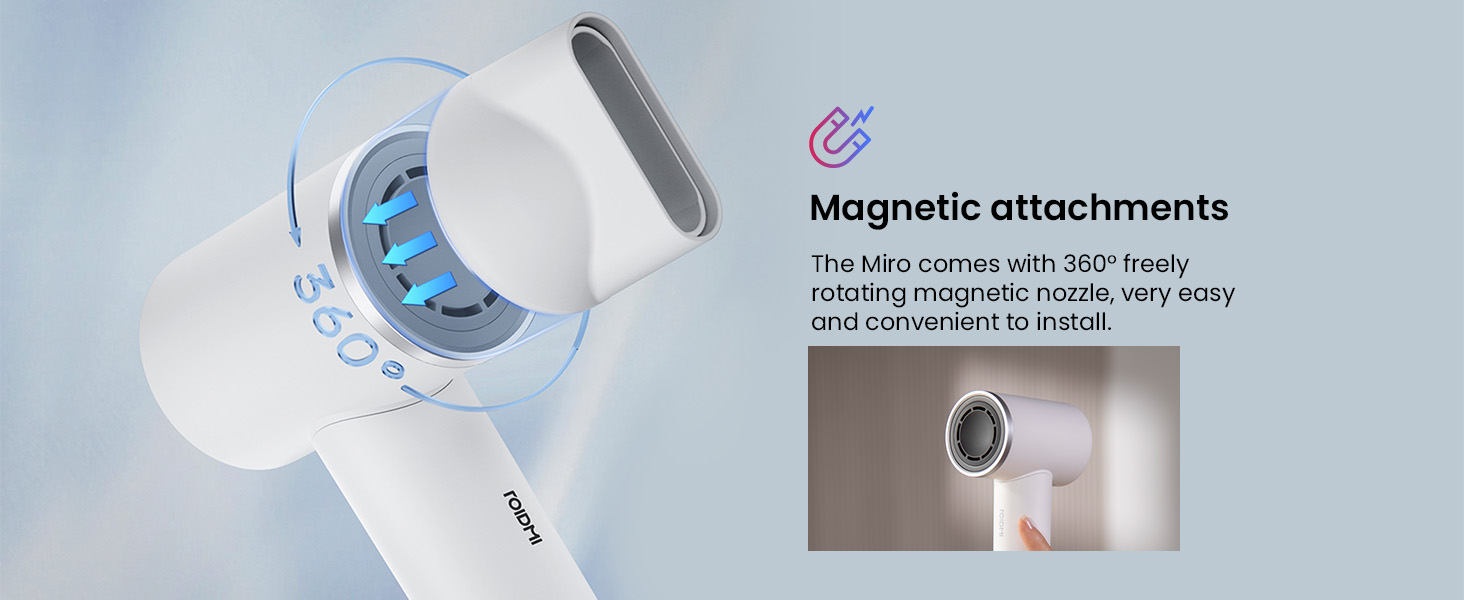 - 【Mantiene el cabello】ROIDMI Miro puede generar 21 millones de iones activos negativos de oxígeno para reducir la electricidad estática del cabello y formar una capa protectora que retiene el contenido de humedad natural del cabello, así como cuidar las raíces del cabello para un resultado suave.
